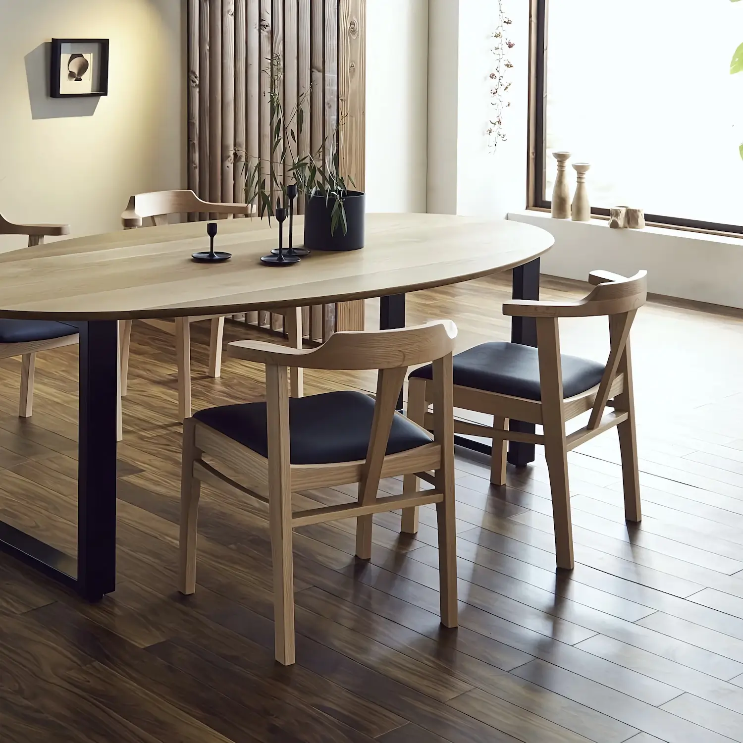 オーク無垢材に、PVCレザーのブラック座面を合わせたシックな色使い。木部カラーは2種類(ナチュラル・ブラウン)からお選びいただけます。