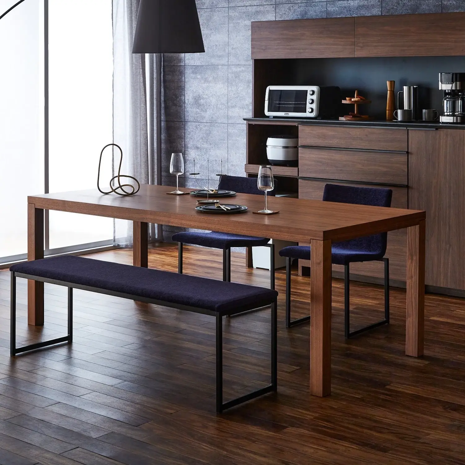 トレンドの無垢材×スチール脚テーブルと相性抜群の、シャープな印象を放つダイニングベンチ。
